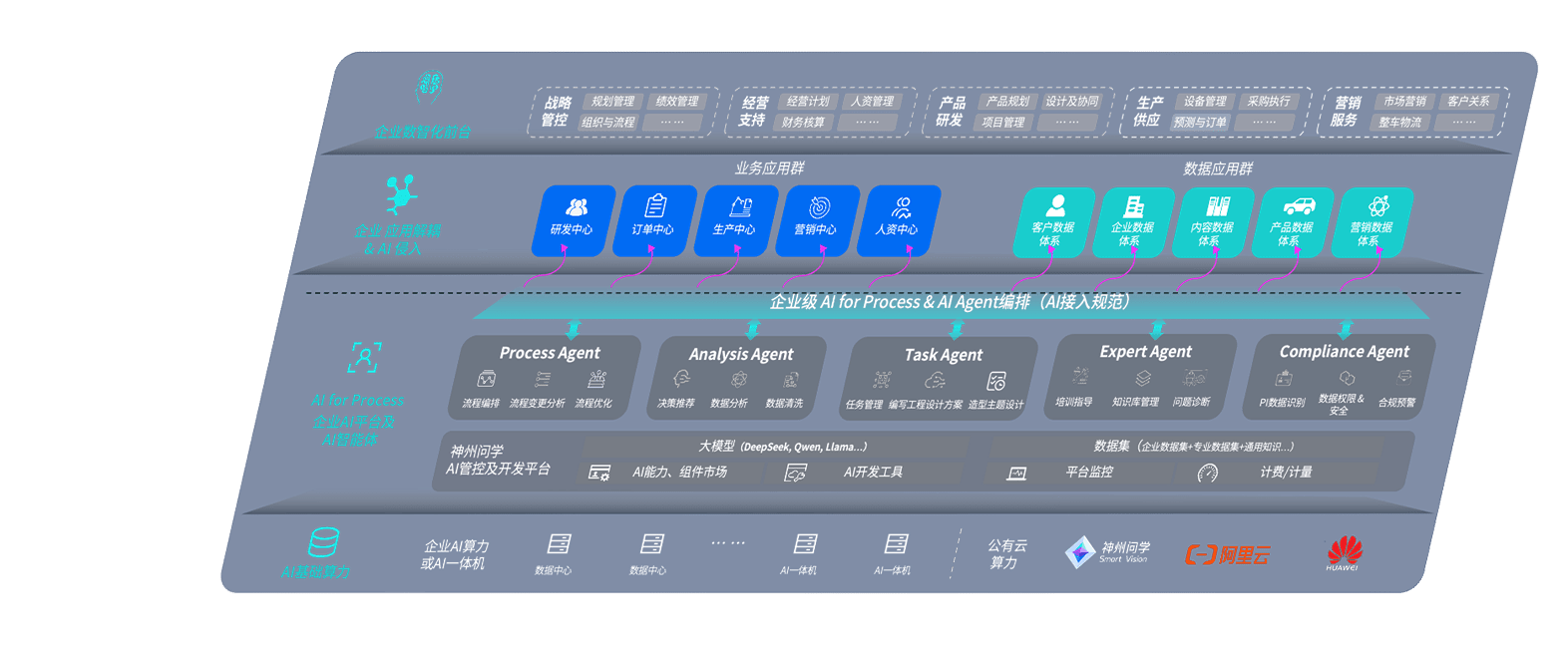端到端的一站式AI工作空间深度融合了从企业战略规划到日常经营的全流程业务板块,,,定向解决车企内部领域多、、、、部门多、、、链条长、、、场景碎片化等难题,,,,支持车企快速构建以AI为核心的生产力写作体系,,实现任务执行与AI能力的无缝集成与交互